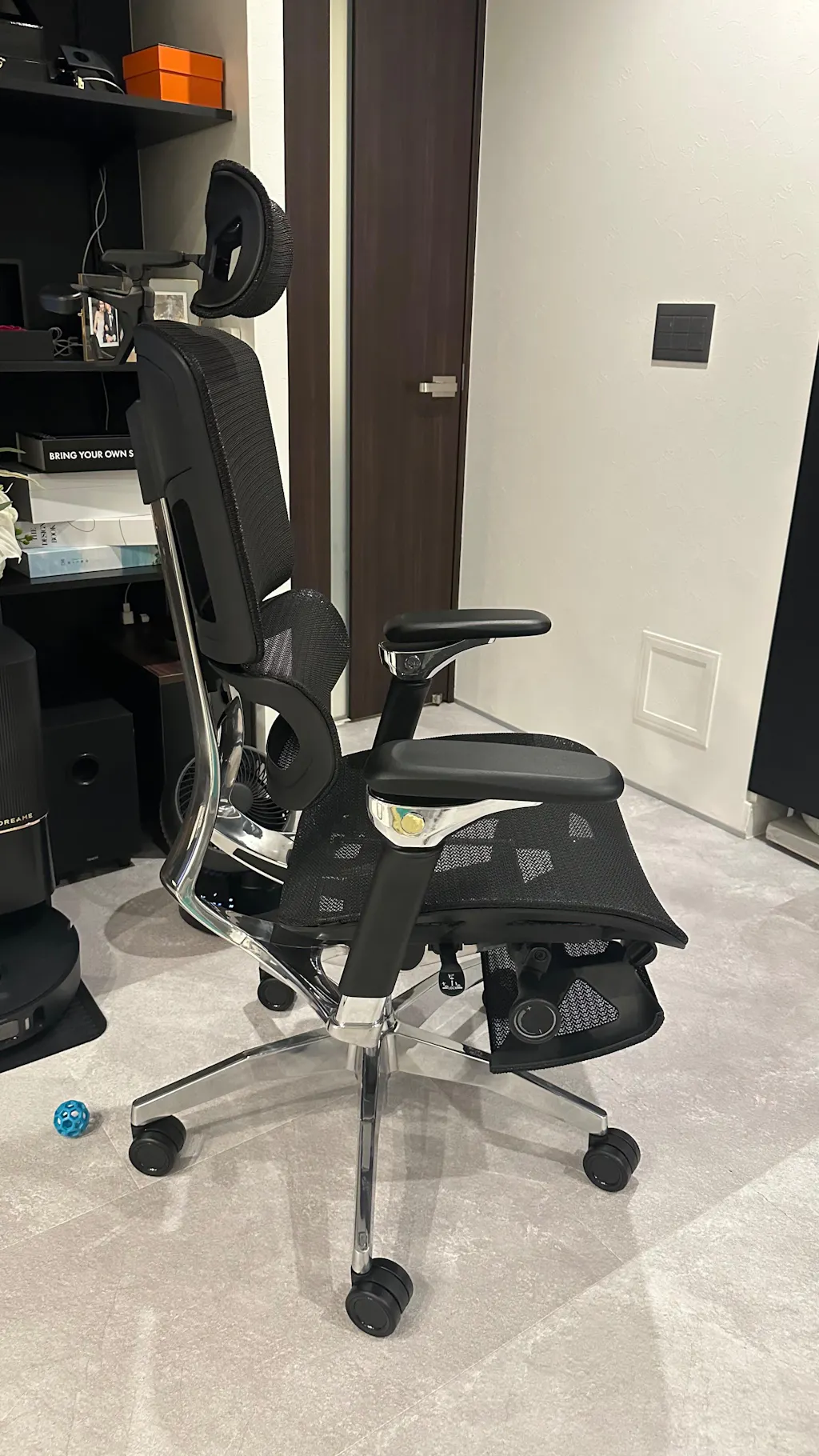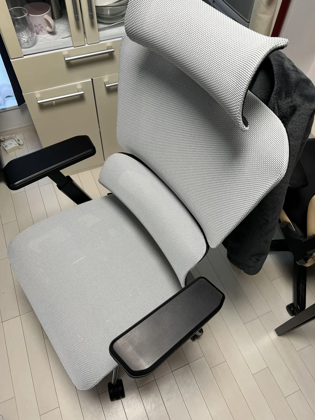 EliteはProやBaseとは違い、アームレストと背もたれのシャーシが一体化しているため、リクライニングに合わせてアームレストもついてきます。